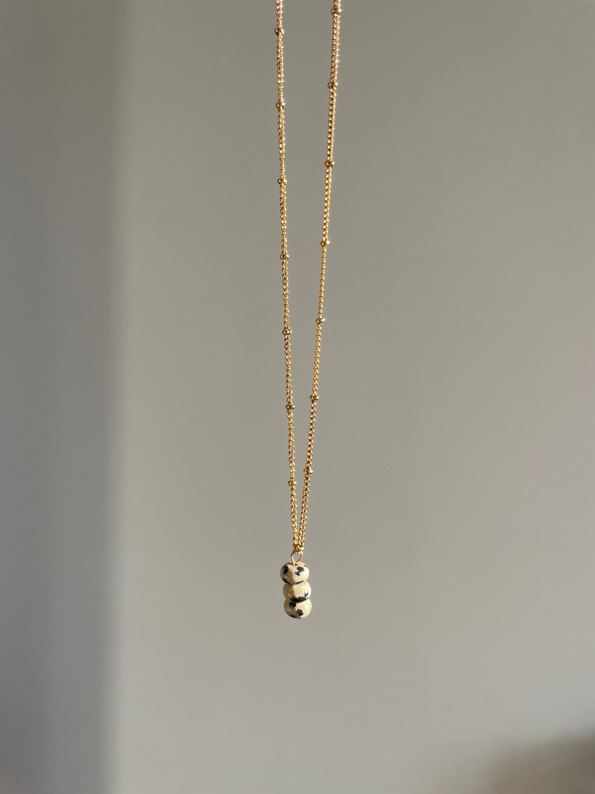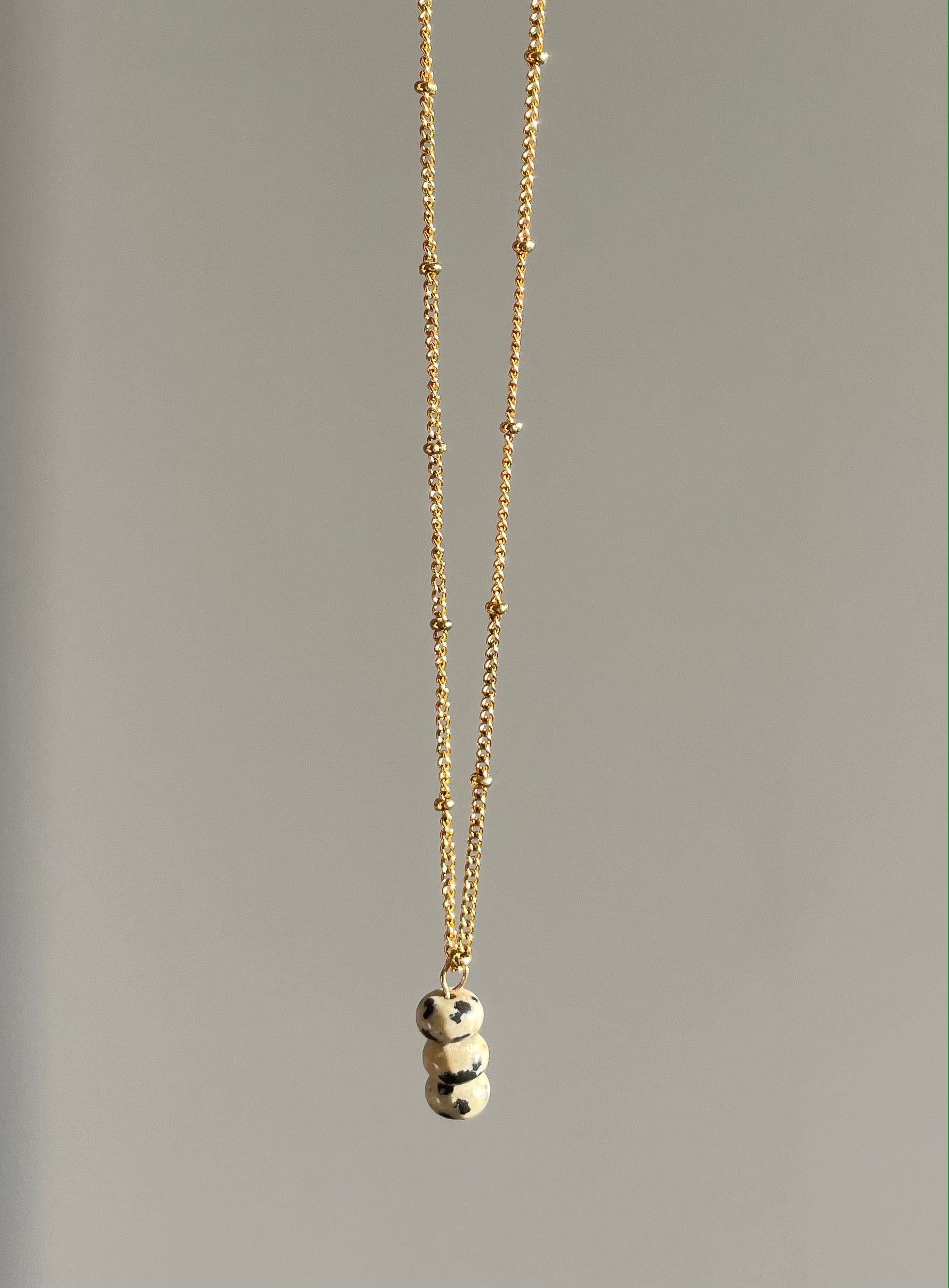 Collier en acier inoxydable et gold filled composé de 3 perles en jaspe dalmatien