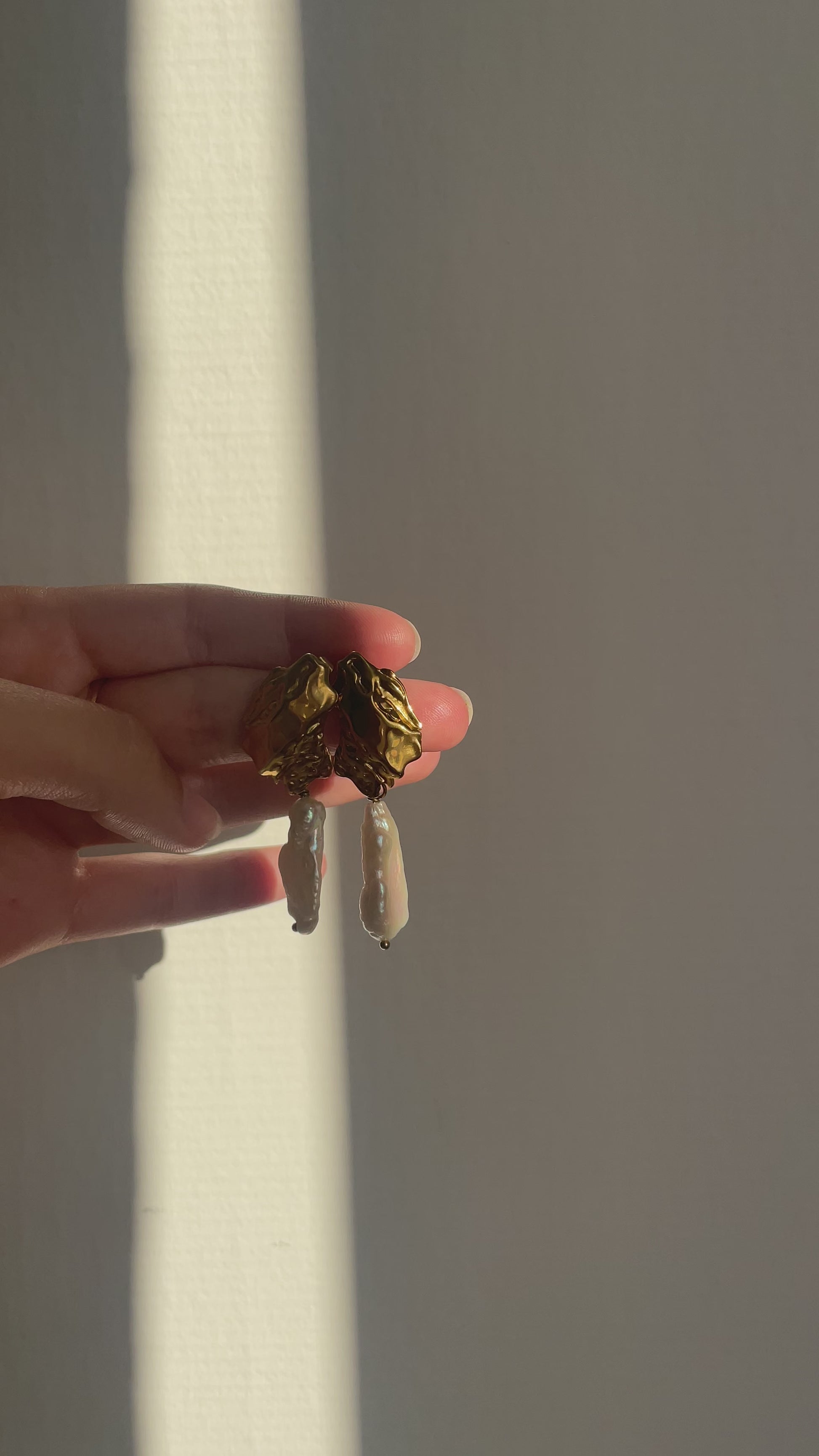 Boucles d’oreilles pendantes en acier inoxydable ornées de 2 perles d’eau douce.