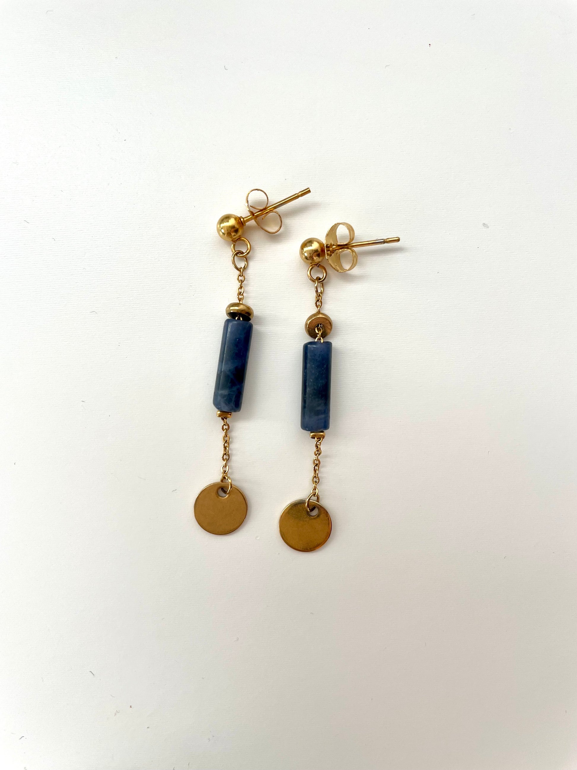 Boucles d’oreilles type pendantes ornées de perles en pierre de kyanite.
